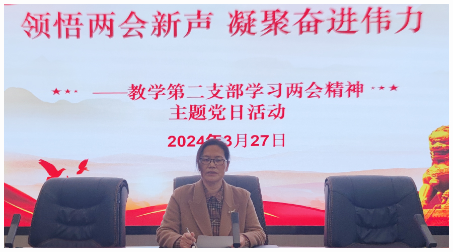 领悟两会新声 凝聚奋进伟力 ——教学第二党支部召开全国两会精神专题学习会 3月27日,学校教学第二党支部在新教学楼一楼多媒体会议室召开“领悟两会新声 凝聚奋进伟力” 全国两会精神专题学习会,党支部全体党...