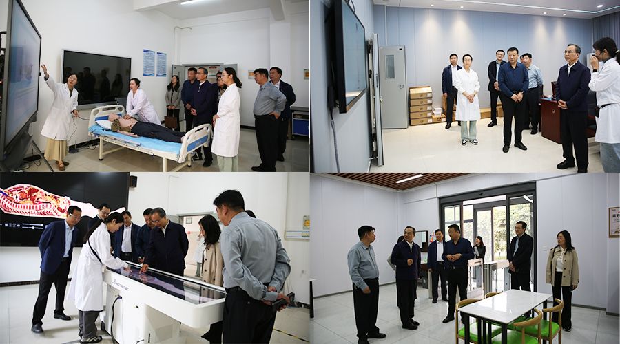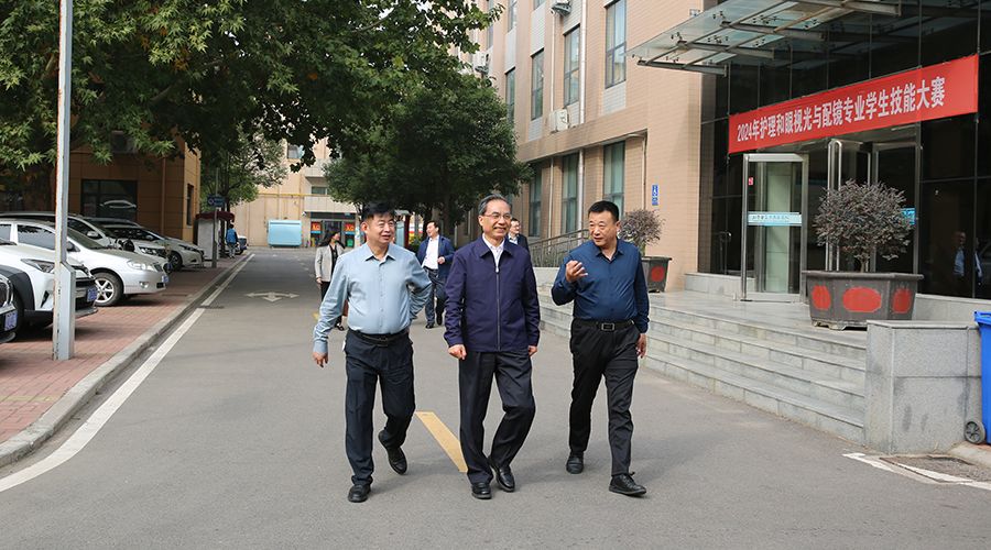 调研中,尹洪斌先后来到护理实训室、眼视光实训室、运动场、学生餐厅、教职工餐厅等地,实地考察学校基本办学情况、教育教学成果和实训实践情况,对学校的建设和发展提出了指导性意见和建议。