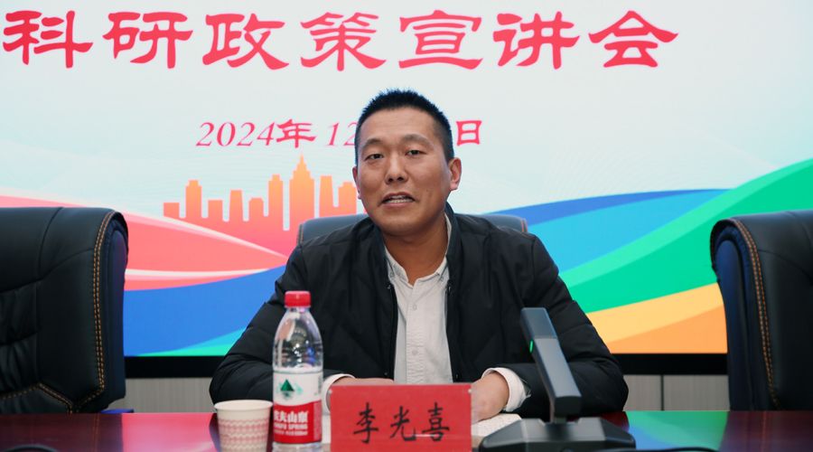 程世平在会上详细解读了科研政策。他从科研项目申报与管理、人员要求和科研启动经费、科研成果署名与结项、科研管理办法与工作量考核、科研平台建设、科研诚信这六个方面进行了宣讲。他强调,科研工作是高校教师的核心任务之一,对于提升学校整体学术水平和竞争力具有重要意义,全体教师要积极参与科研项目,严格遵守科研诚信规范,共同推进学校科研工作。