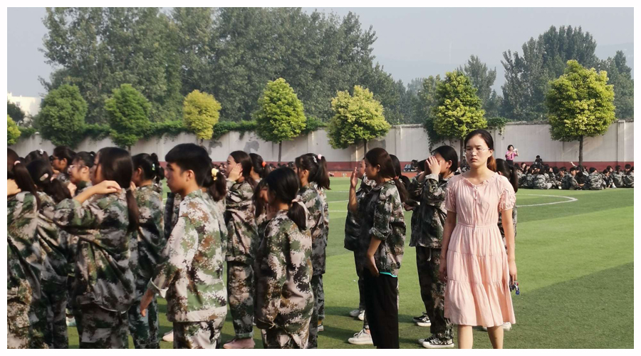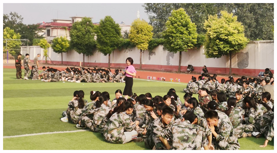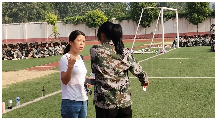 训练场上,杜小歌、周凡丁、张亚会、郑风琴、郭丹、王泽华、张亚姣等班主任老师,与同学们谈笑风生、打成一片,以切身经历引导感化同学们克服苦累、积极乐观对待军训。