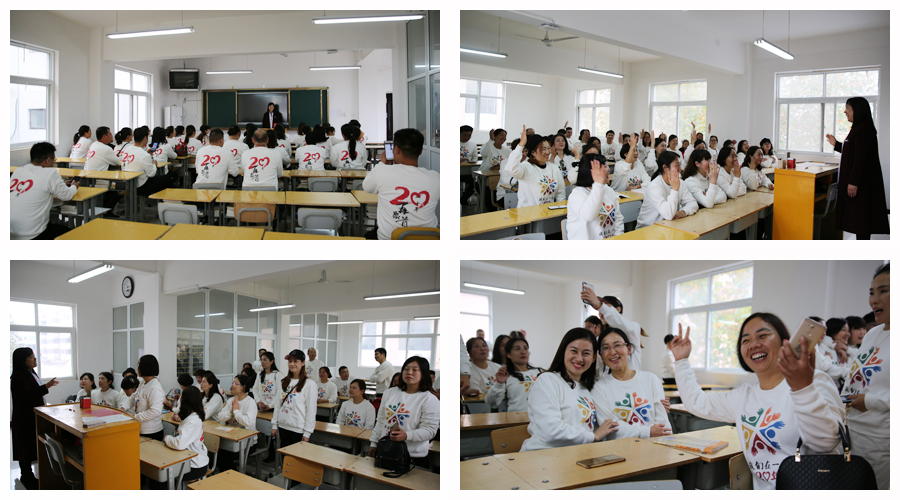在教学楼308教室,聆听恩师谆谆教诲,甜甜的回忆,灿烂的笑靥。