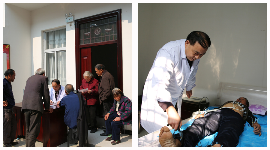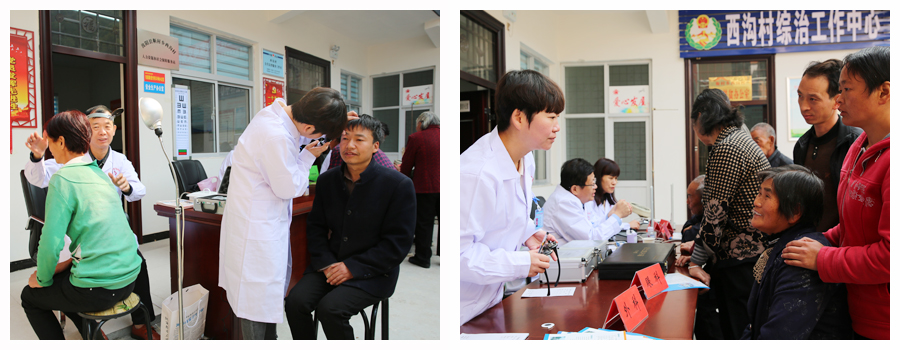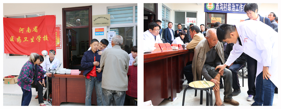 西沟村距离县城较远,地势偏僻,大多土地是山地。部分村民身体欠佳、常年患病,无钱医治,又不便到大医院检查治疗。为响应上级号召,解决贫困户就医难问题,河南省医药卫生学校精选医疗骨干,一行10余人,随同工信委精准扶贫工作组深入该村免费为村民义诊,将健康送到村民家门口。