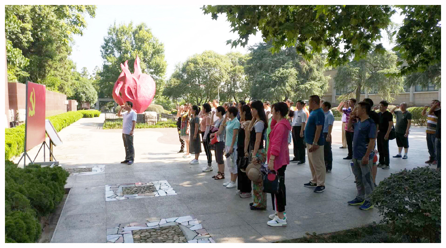 为全面深入学习贯彻党的十九大精神、迎接党的生日,缅怀革命先烈,进一步增强党员干部的党性观念,提高党性修养,坚定理想信念,凝练干部队伍,锤炼工作作风,切实把党员干部的思想统一到党的十九大精神上来,把全体教职工的力量凝聚到学校建设发展上来,本着“在学习中提高认识,在实践中深化学习”的一贯原则,6月20日至6月21日,我校在党委书记李志明带领下,组织党员干部赴信阳新县红色教育基地,追寻红色足迹,汲取信念“钙质”。来自教学、附院、后勤、机关的40余名党员干部参加了学习活动。