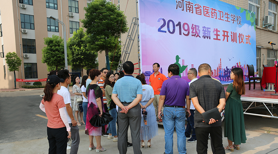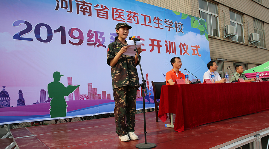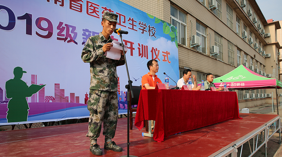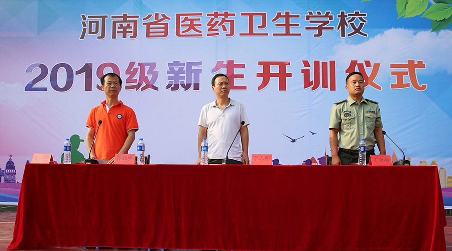 2019年8月24日上午8时30分,河南省医药卫生学校2019级新生军训开训仪式在校综合运动场如期举行。学校党委李志明书记,军训总教官王永战,学生科孙战胜科长出席会议。孙战胜科长主持了开训仪式。