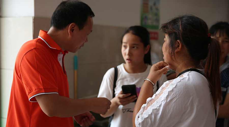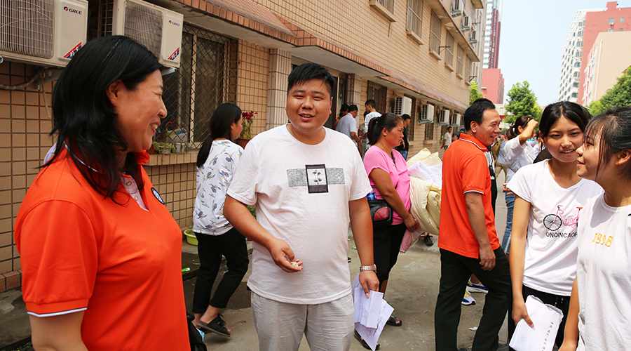 新生报到当天,学校领导不时来到各新生接待点,对参与新生接待的老师和同学进行慰问,详细了解新生报到情况,与前来报到的新生及家长们亲切交谈,了解他们的家庭情况、报到手续的办理情况等,并鼓励同学们珍惜韶华,努力成长成才。