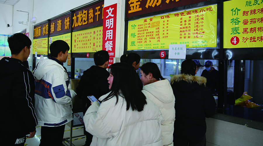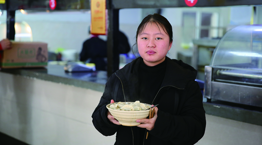12月22日上午11点,学苑餐厅一锅锅热腾腾的饺子相继出锅,留校学生凭票有序领取了免费水饺。