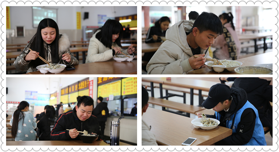 为弘扬中华民族优秀传统文化,增强文化自信、凝聚集体力量,为“冬至”留校学生送上如家般的校园温暖,学校领导在“冬至”前进行安排部署,学生科、后勤服务中心认真组织落实,学校食堂精心准备,确保每位留校学生都能吃上热腾腾的饺子。