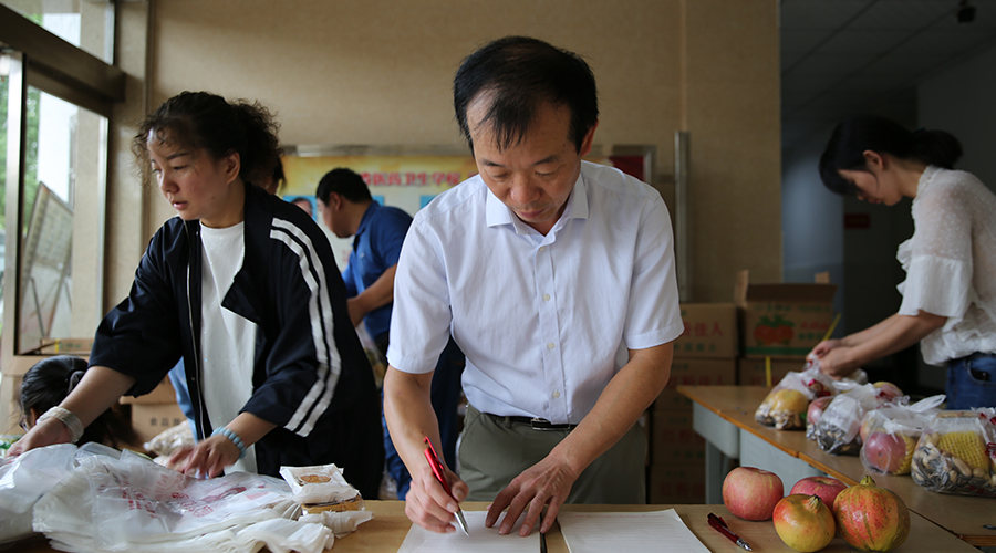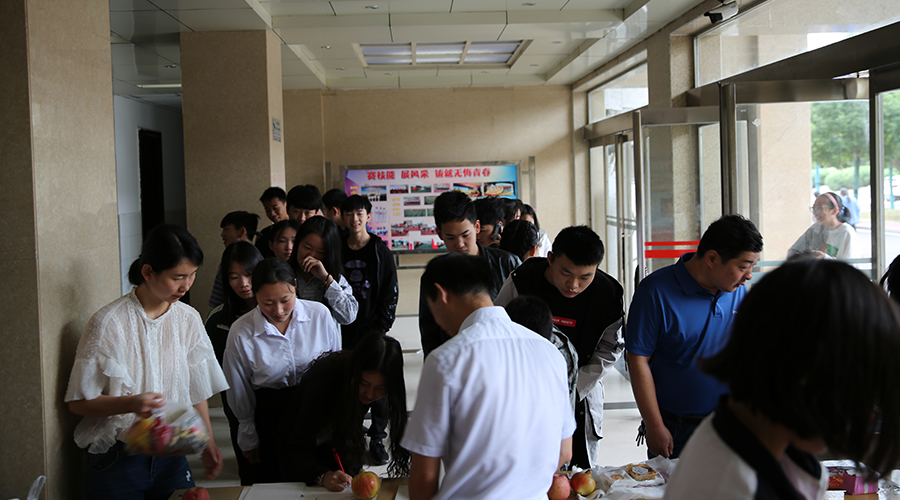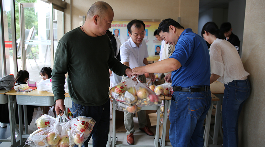 上午九时,受黄磊校长、李志明书记和阚书敏副校长委托,学生科孙战胜科长及值班教师、学生志愿者在教学楼一楼,为即将开始的发放月饼活动做准备。