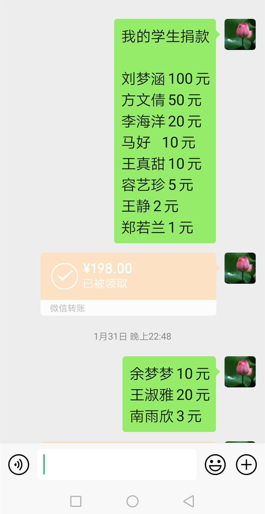 19级护理1班同学们积极捐款
