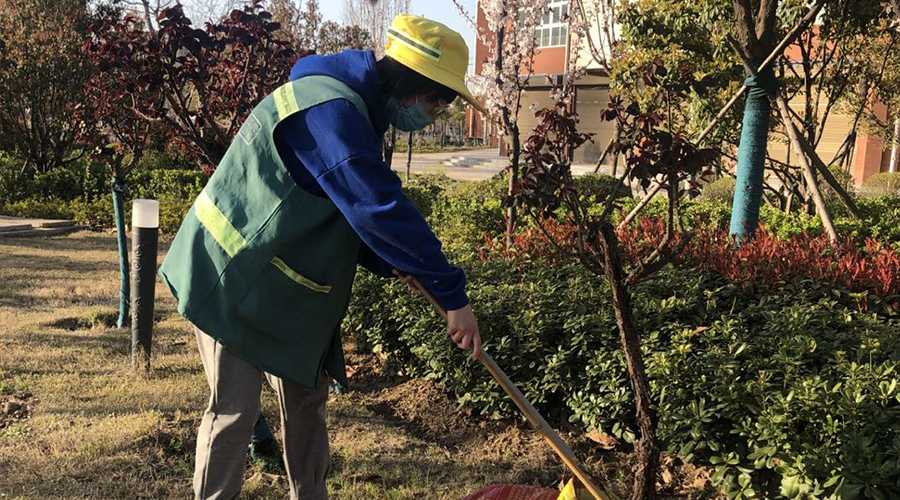 志愿者认真做好保洁工作