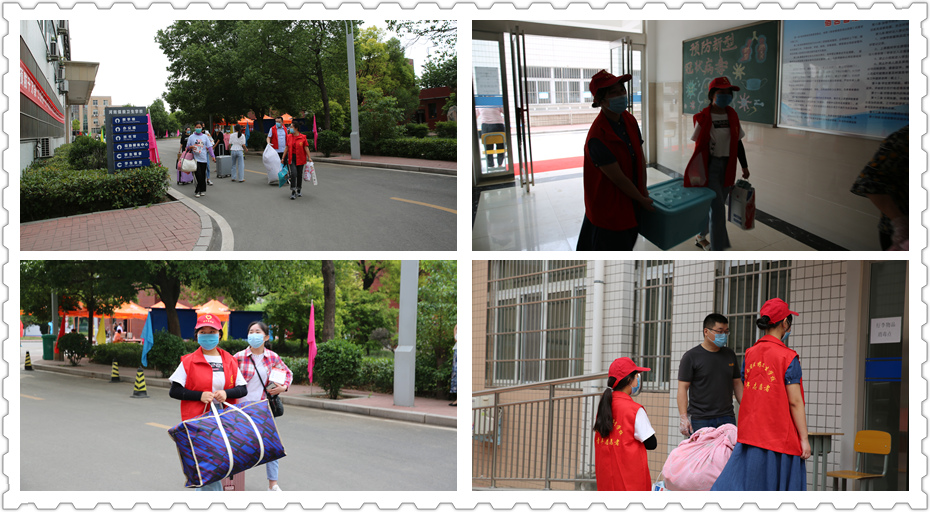由于校门口到教室、寝室还有一段距离,于是一幕幕暖心的情景映入眼帘:学校领导、班主任、志愿者老师齐上阵,热情帮助同学们搬运行李物品,欢迎同学们重返校园大家庭!