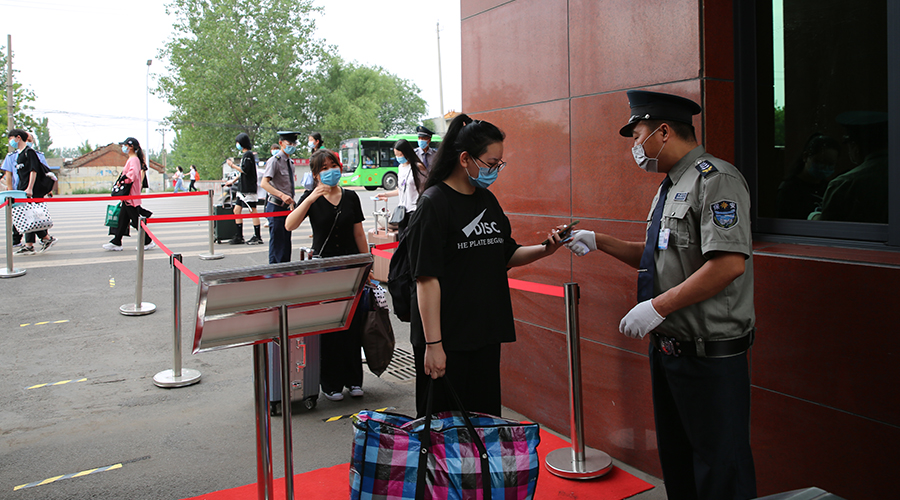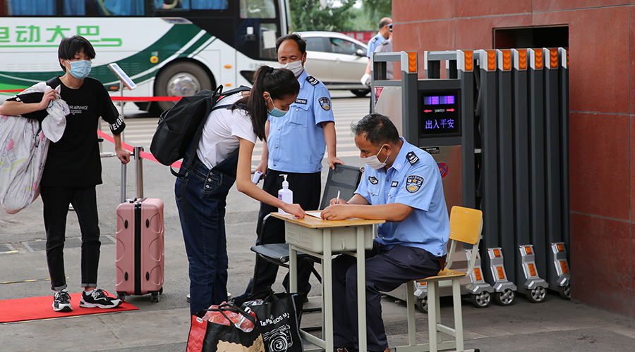 入校门前,学校门卫保安老师对同学们的行李物品挨个消毒,并依序进行体温检测,如有同学体温异常,会被带离到旁边的体温观测点,进行进一步观察。通过体温检测的同学,便可顺利入校啦!
