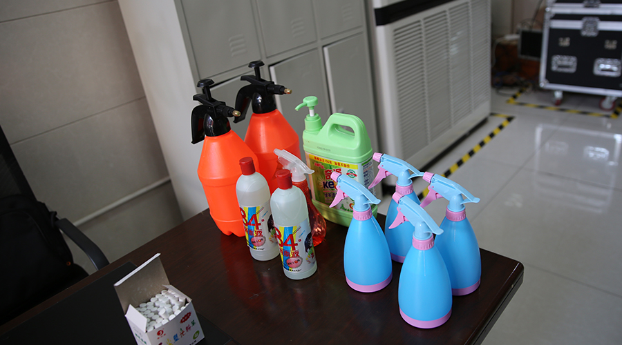 宿管人员认真消毒、检测体温