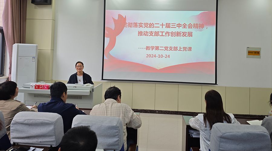 为深入贯彻落实党的二十届三中全会精神,引导支部教职工及全体学生深刻领会全会精神及重要意义,10月24日和30日,我校教学第二党支部分别组织开展了以“贯彻落实党的二十届三中全会精神,推动支部工作创新发展”为主题的专题党课及以“坚定理想信念,加强党性修养”为核心议题的主题党日活动。会议由教学第二党支部书记魏清枝主讲,支部全体党员参加了活动。