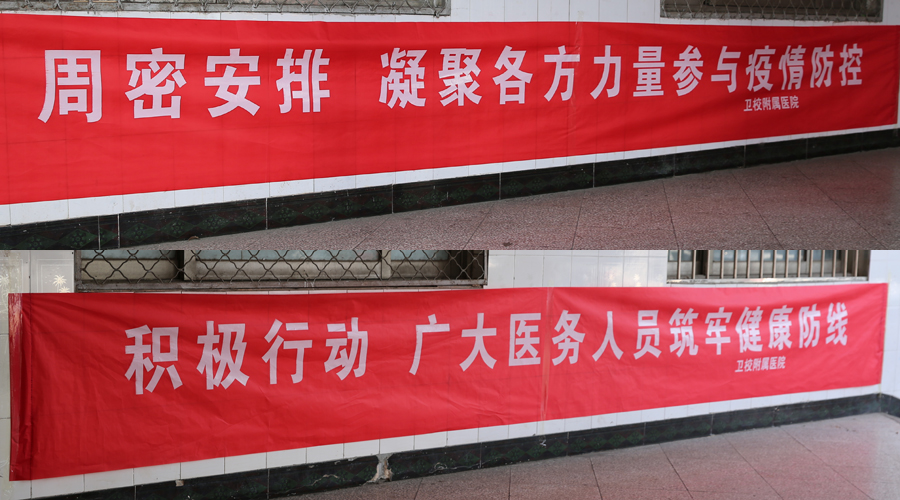附属医院春节期间,相应国家号召,按照学校整体工作部署,放弃节假日、全员正常上班。及时组织召开职工大会,学习相关文件精神和上级工作部署,结合实际,开展疫情防控工作。坐岗、分诊、测体温……专人专岗、守岗尽责,各项工作井然有序。