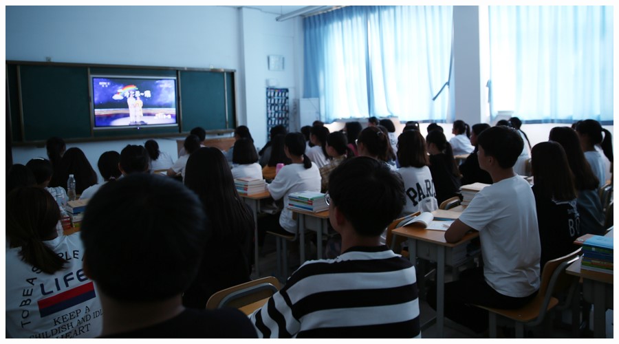 在李书记为同学们集中讲授思政课期间,学校其他各班级,在班主任老师的带领下,以班级为单位组织收看了2019年中央广播电视总台央视综合频道(CCTV-1)播出的《开学第一课》视频。