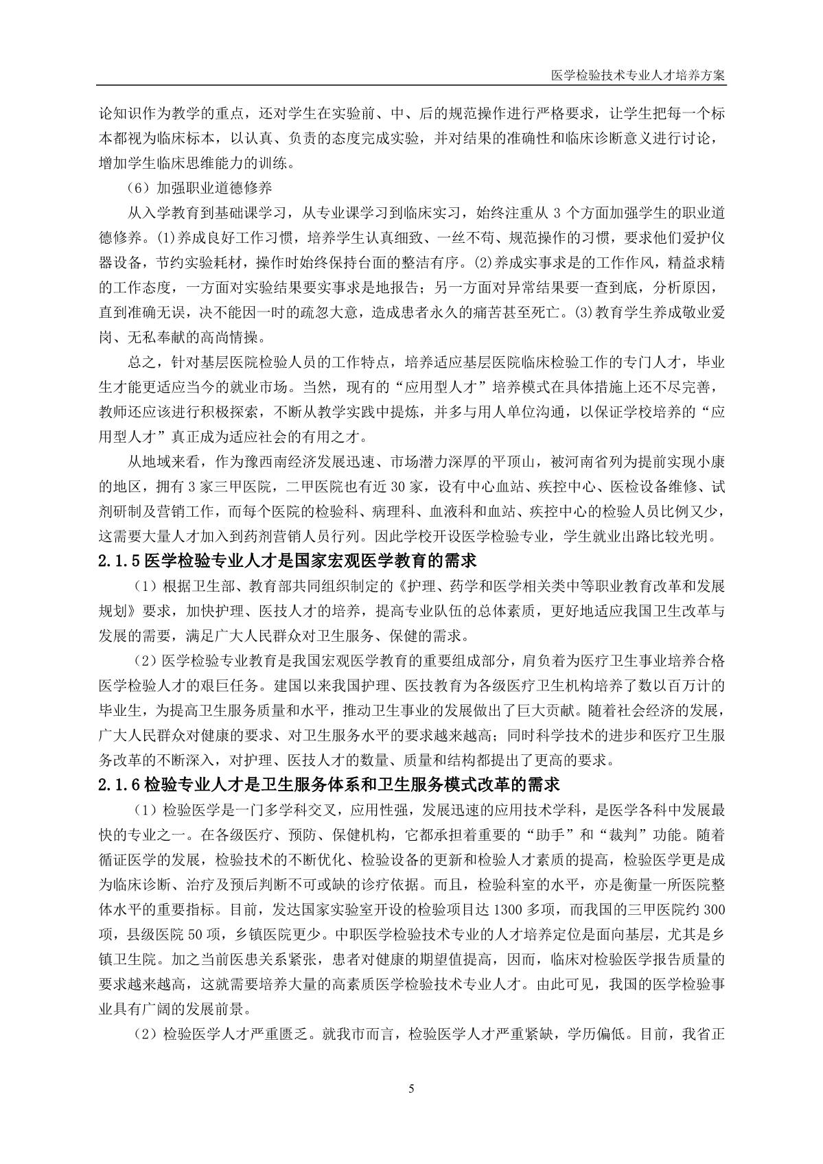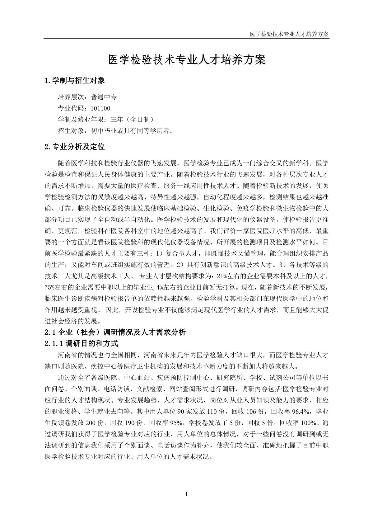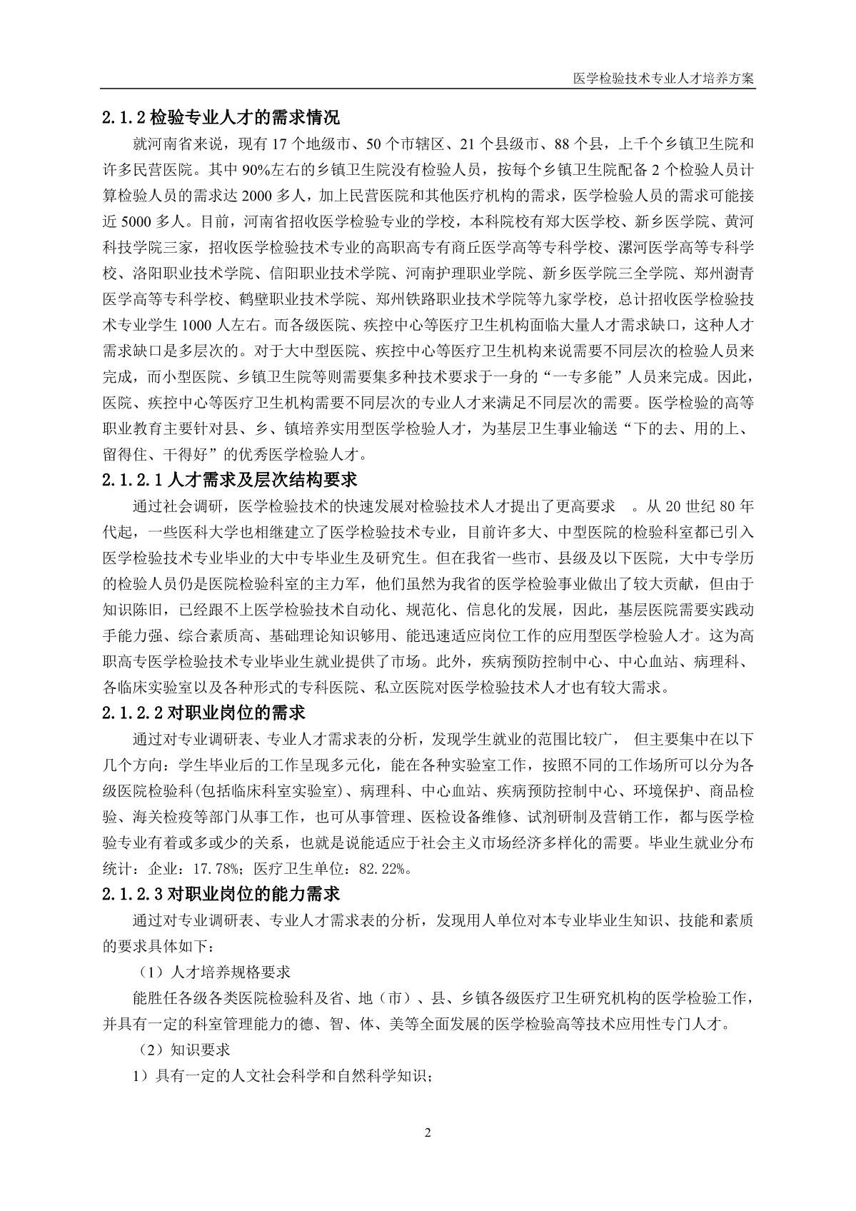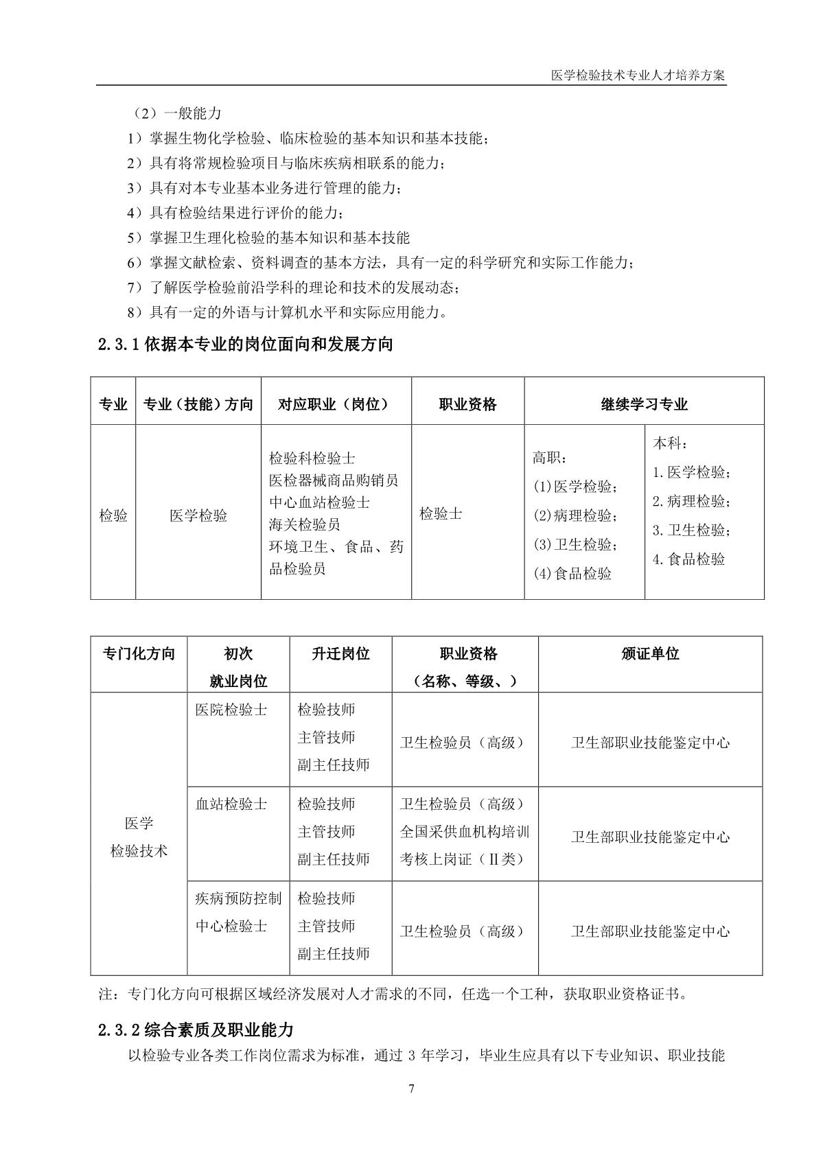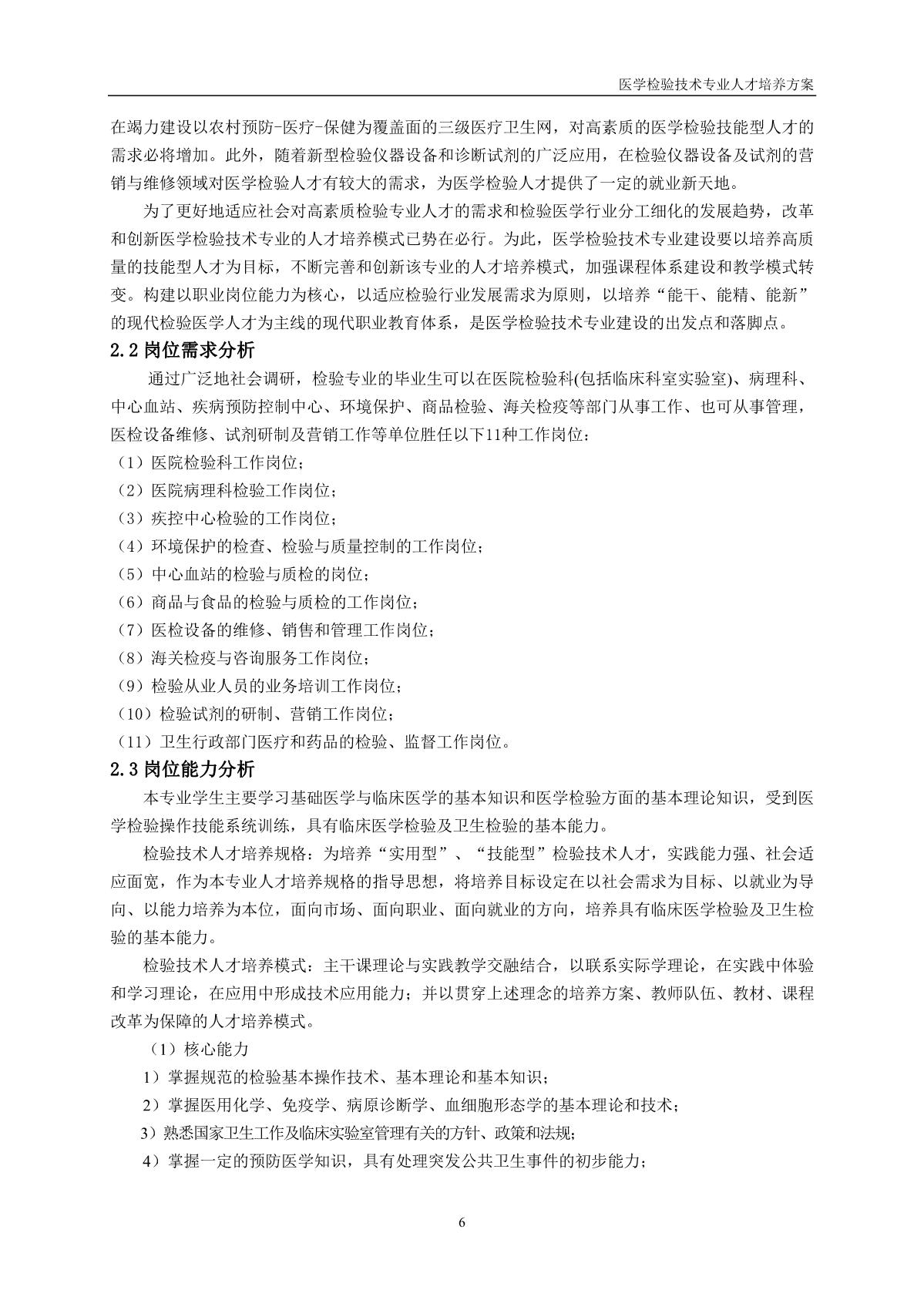 医学检验技术专业人才培养方案