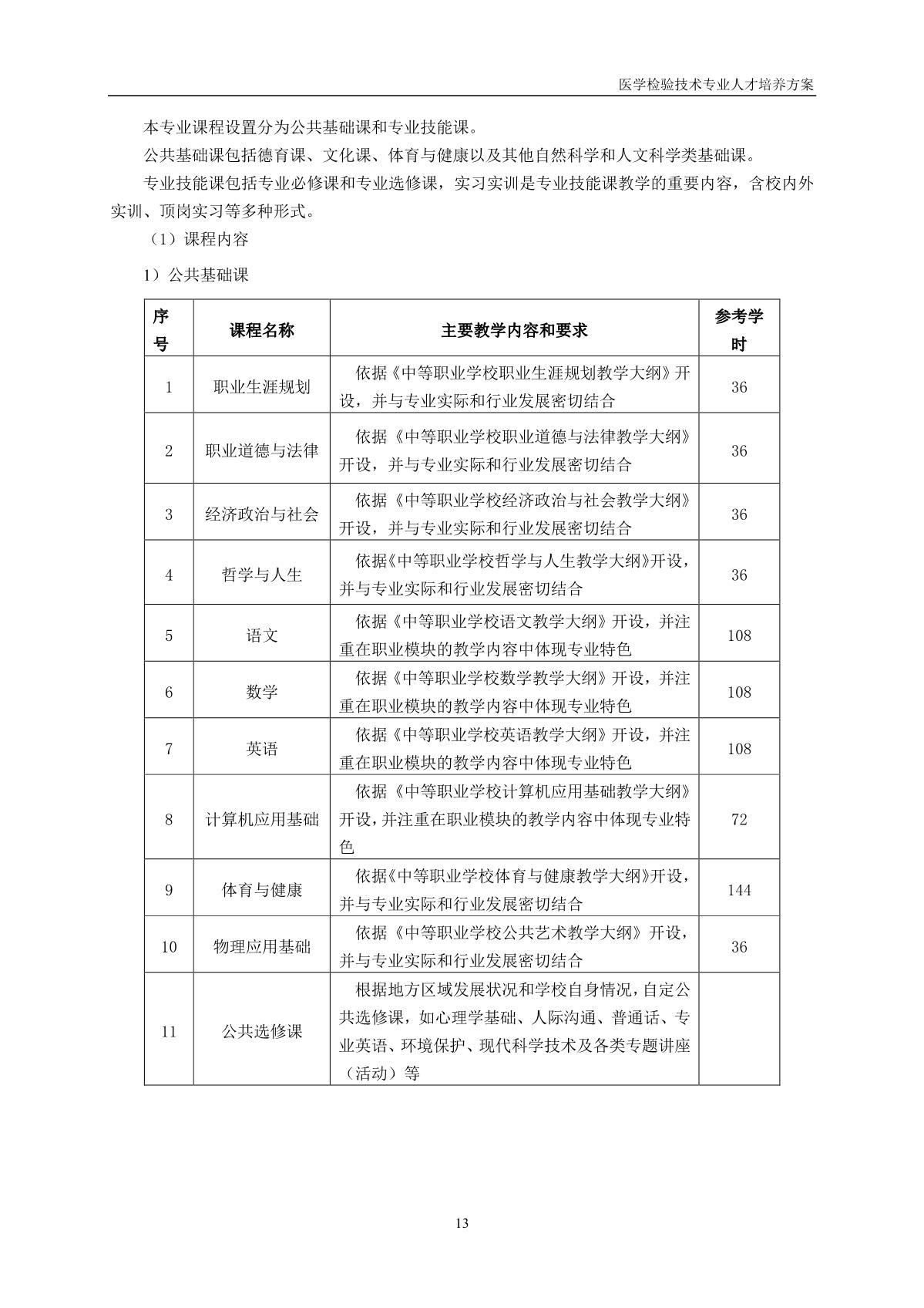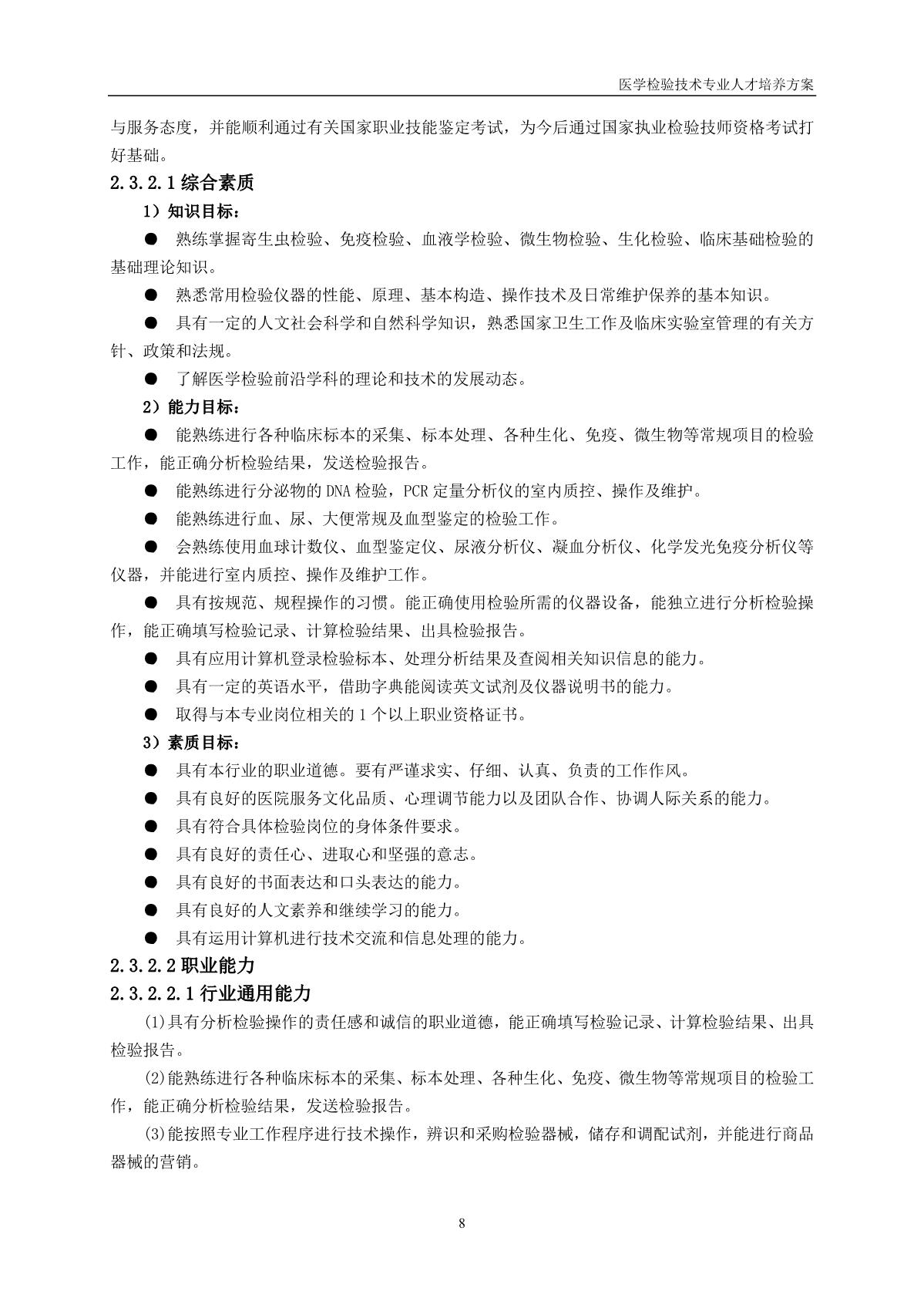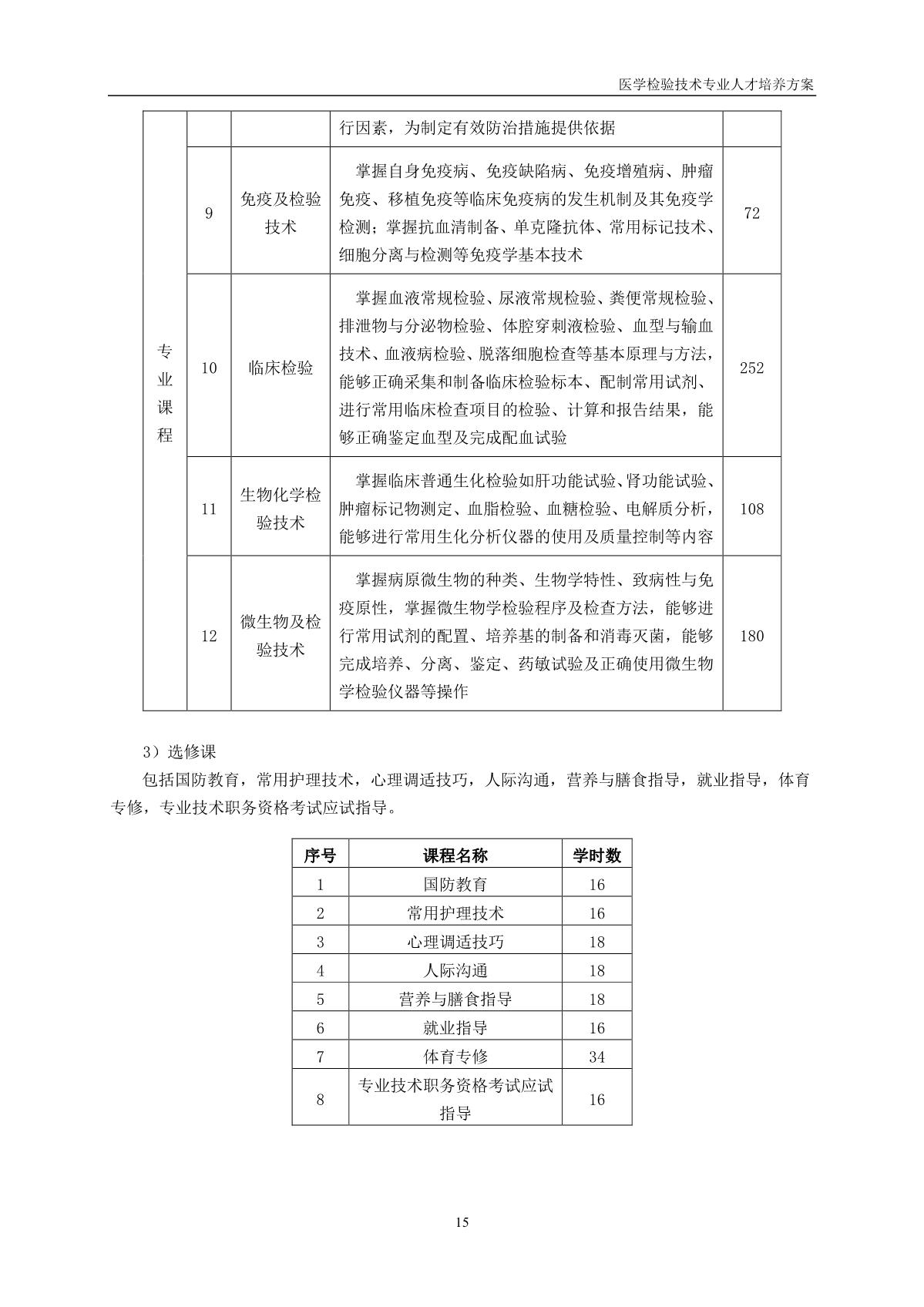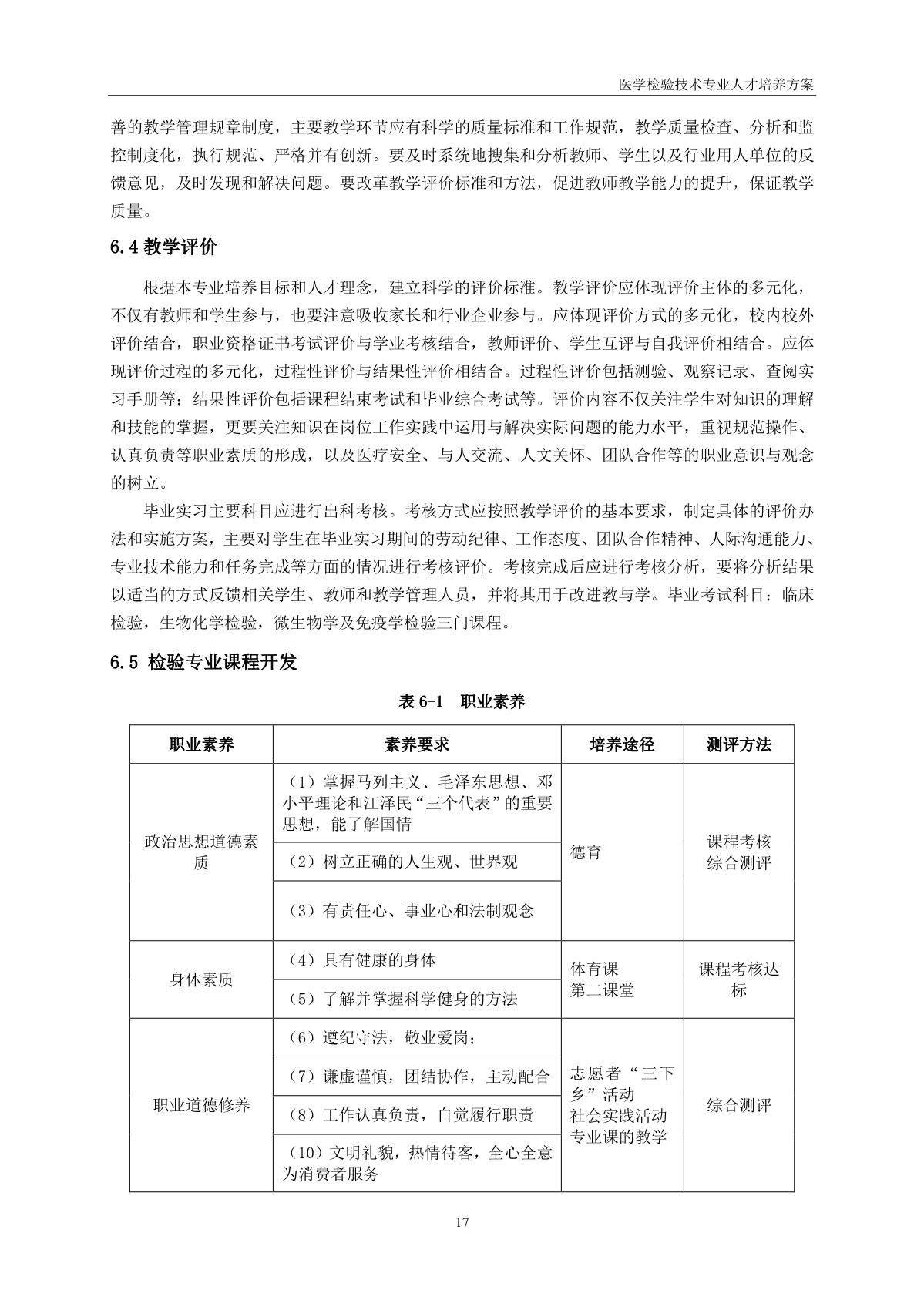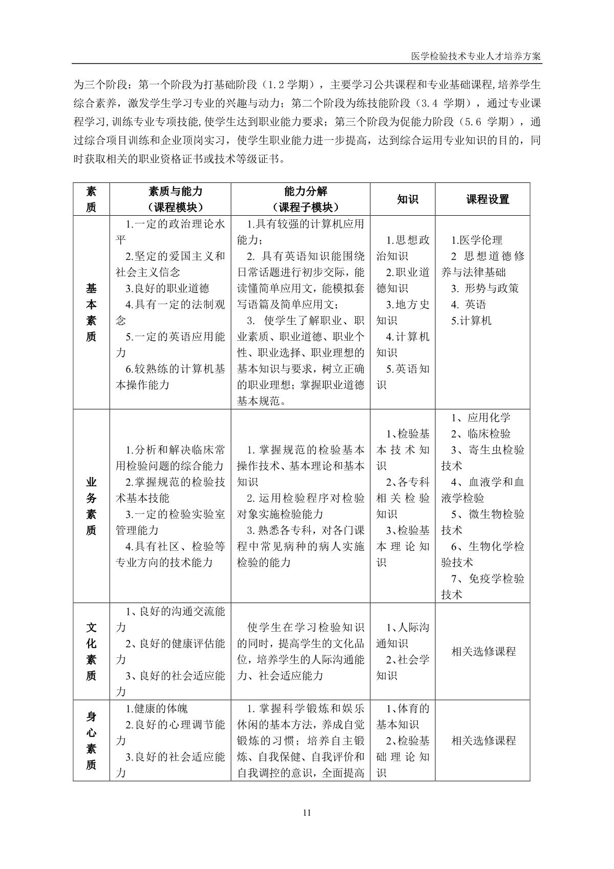 医学检验技术专业人才培养方案