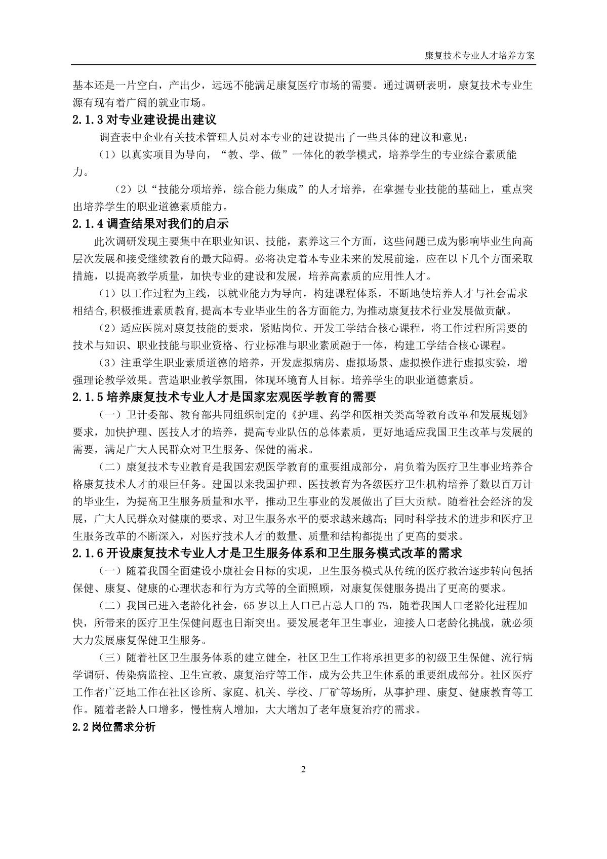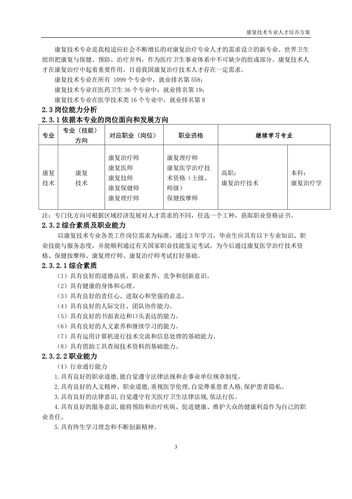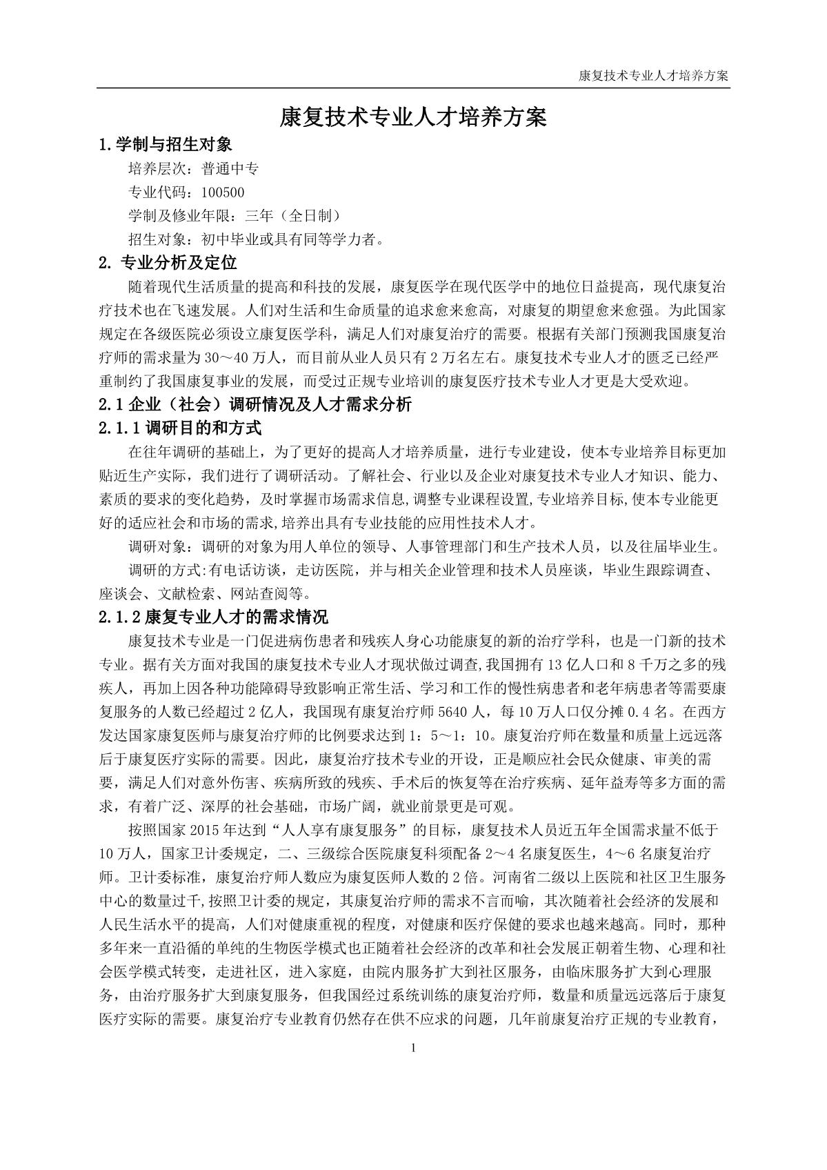 康复技术专业人才培养方案