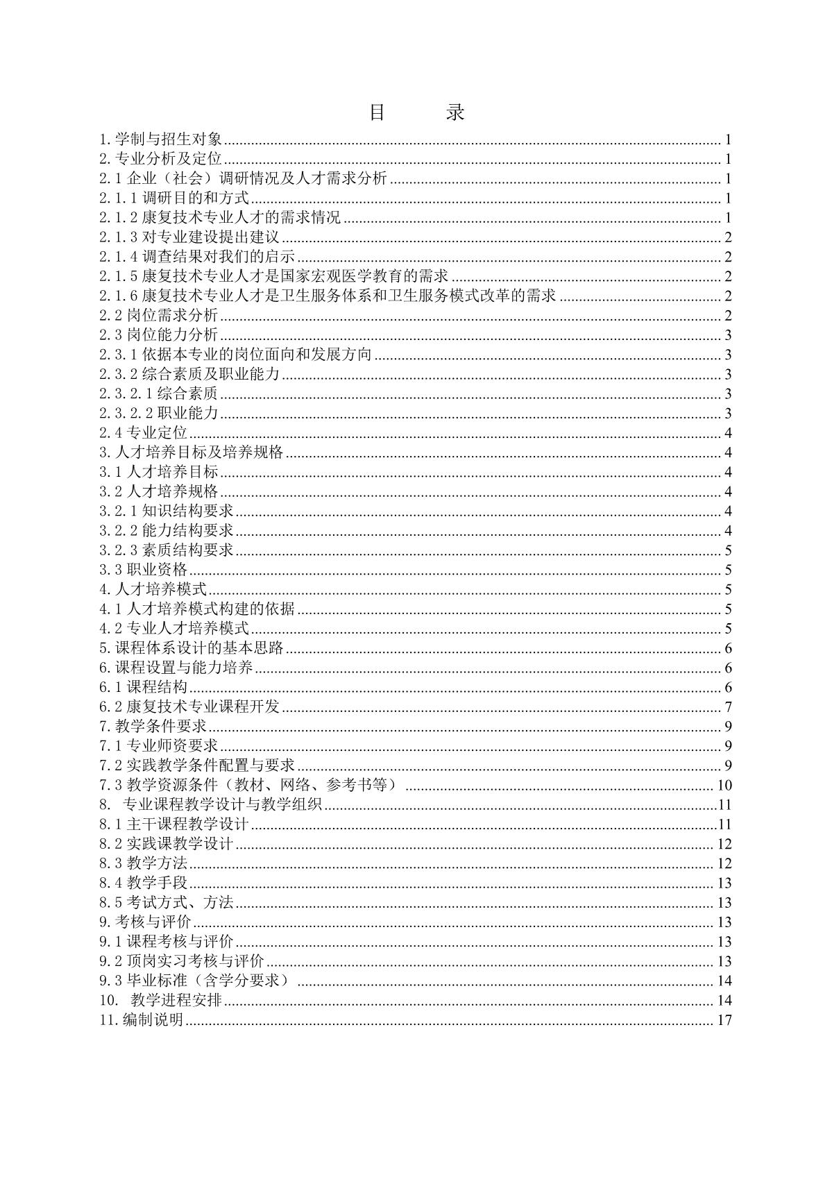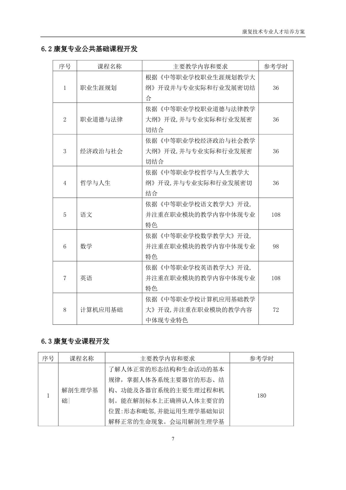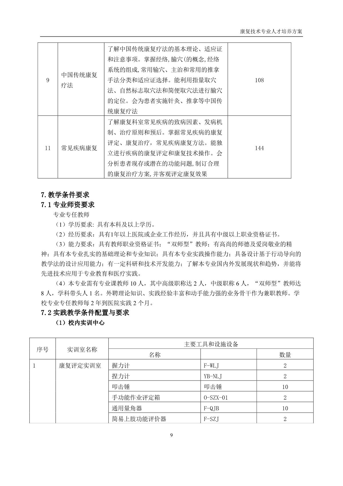 康复技术专业人才培养方案